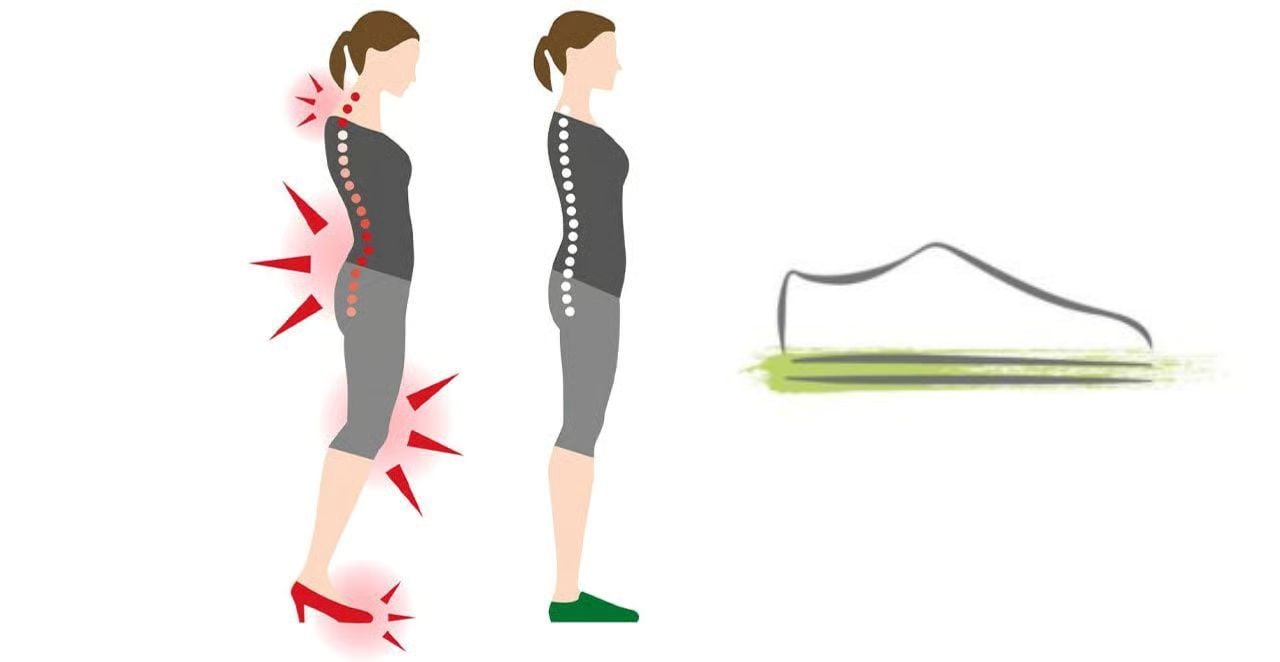 With a high heel, the Achilles tendon is irritated and gradually shortens. With a flat shoe, it is completely anatomically in its natural line and length.